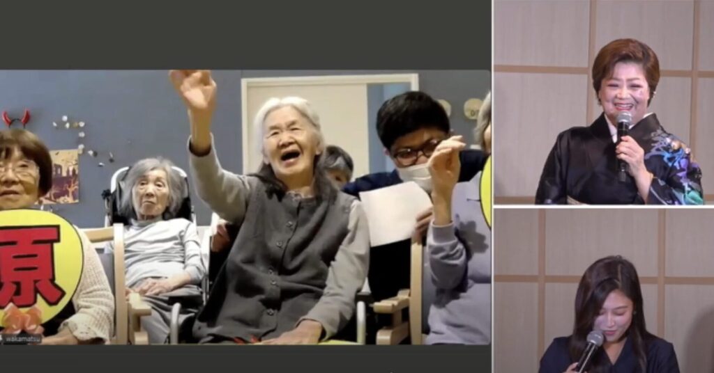コンサートの最後は、「みんなで歌おう」のコーナーです。今回は「幸せなら手をたたこう」を全員で合唱。松原さんの明るいリードで、画面の向こうの施設やご自宅から、たくさんの手拍子と笑顔が生まれ、会場は幸福感に満ちた一体感に包まれました。